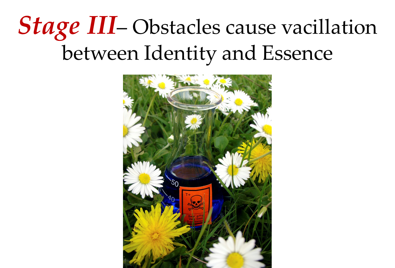 Stage III finds our hero with a clearly established end goal.  He makes plans to take action, but obstacles are thrown in his way which causes him to vacillate between his Identity and Essence.  Is he going to sidestep, counter, and overcome these obstacles, or will he cut his losses and run right back into his safe yet unfulfilling Identity?  As an audience it gives us something to root for.  We want to see our hero pick himself up and dive right back into the fight.