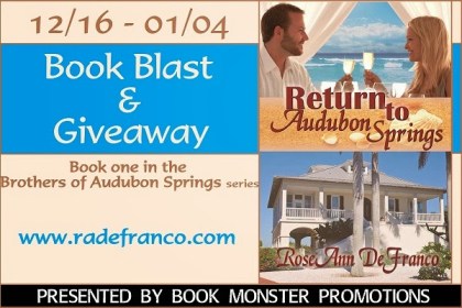 A celebration is in order! As of today 80 beautiful people have taken the time to post a review on Amazon. It is often said in the writing community that the BEST gift you can give an author is the time it takes to write a review. I feel immensely blessed that RETURN TO AUDUBON SPRINGS has received such positive feedback during this Kindle Select Period, and I’m looking forward to things to come with the World Wide Release on January 3rd and with the Kindle Select Release of SECONDHAND ROMANCE on December 27th!